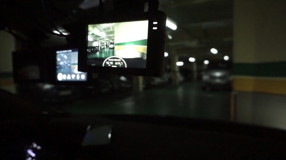 아래에서 위로 찍어 보았습니다. 두 블랙박스 모두 측면이나, 정면, 하단에서 살펴보는 시야각은 큰 차이는 없죠?