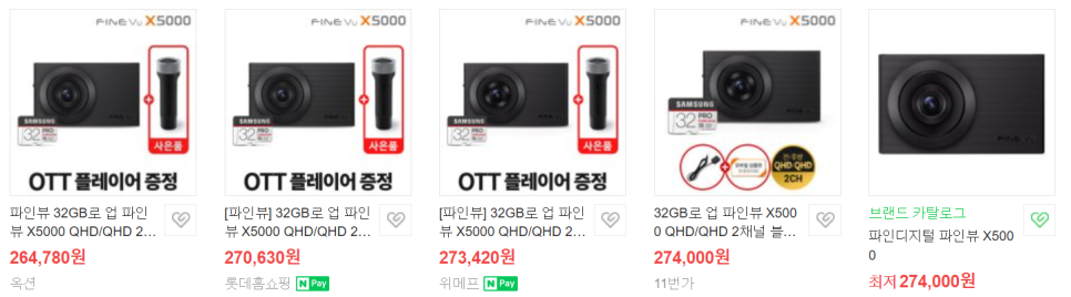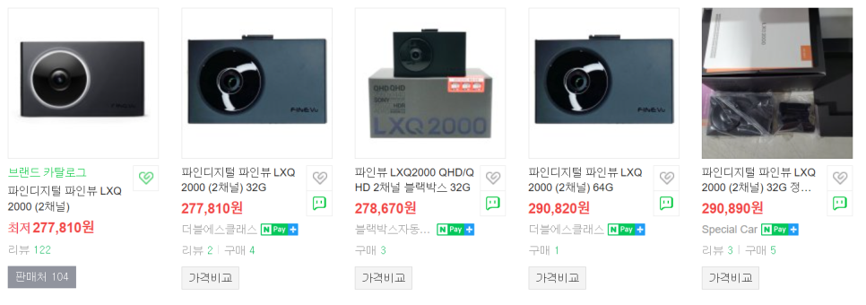 끝으로 가격 비교를 해보면, 늦게 출시된 파인뷰 X5000 가 더 저렴하기도 하고, 사은품을 많이 줍니다. GPS 까지 주고, 여기에 AI2 Play 까지 주는 판매처도 있습니다. 제가 구입한다면 LXQ2000 보다는 파인뷰 X5000 를 구입하겠습니다. 아, 여기에 한가지 알아두셔야 할 것은 저 최저가 금액은 자가장착 기준 입니다. 무상 장착이 포함되지 않은 가격이고, 무상장착을 원한다면 본사에서 구입하셔야 하고 가격대가 좀 올라가지만, 파인뷰 X5000 가 조금 더 저렴하네요.
