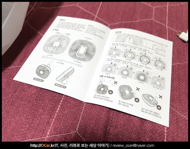 불스원 멀티 무선선풍기 제품 구성품 입니다. 생각보다 큰 무선선풍기 본체와 충전용 케이블, 그리고 한글 메뉴얼이 제공됩니다.