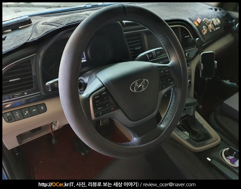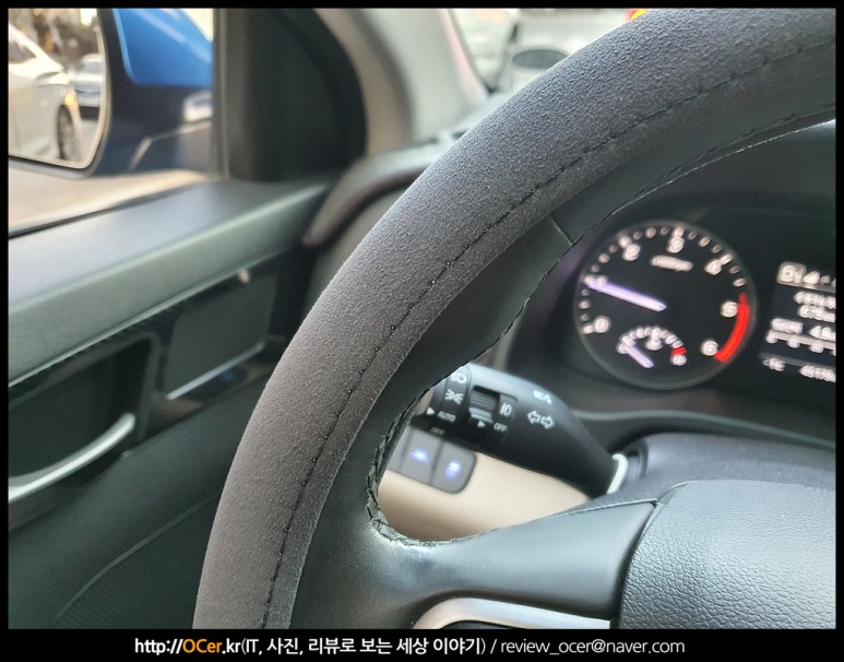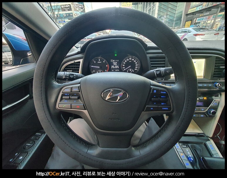 아직 새거라 길이 덜 들어 그런지, 핸들커버를 끼고 다음날 운전을 처음 할 때는 좀 미끄럽다는 느낌을 받았는데, 1주일 정도 운행해 보니 지금은 그것에 적응되어 그런지 오히려 큰 힘을 들이지 않고도 핸들링이 가능해졌습니다.