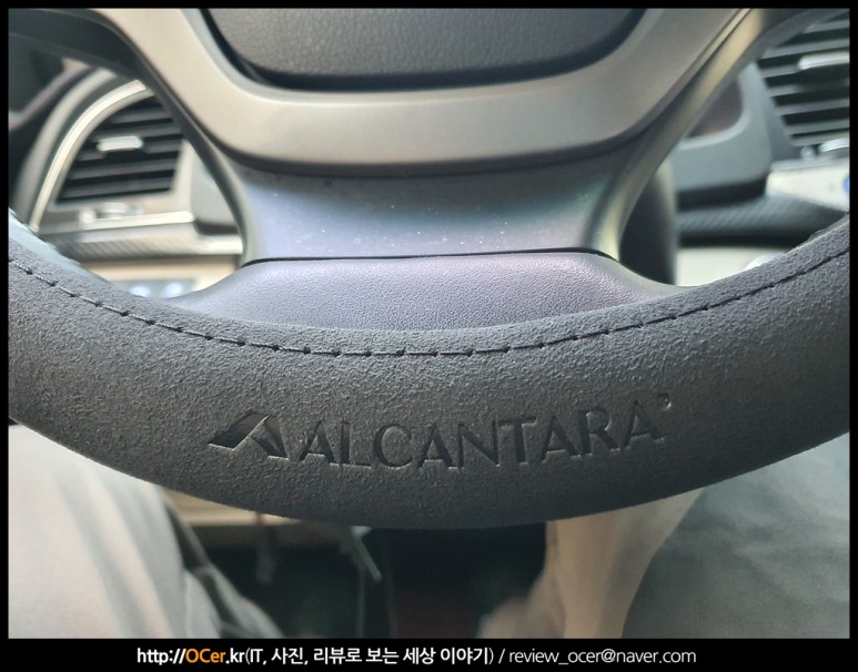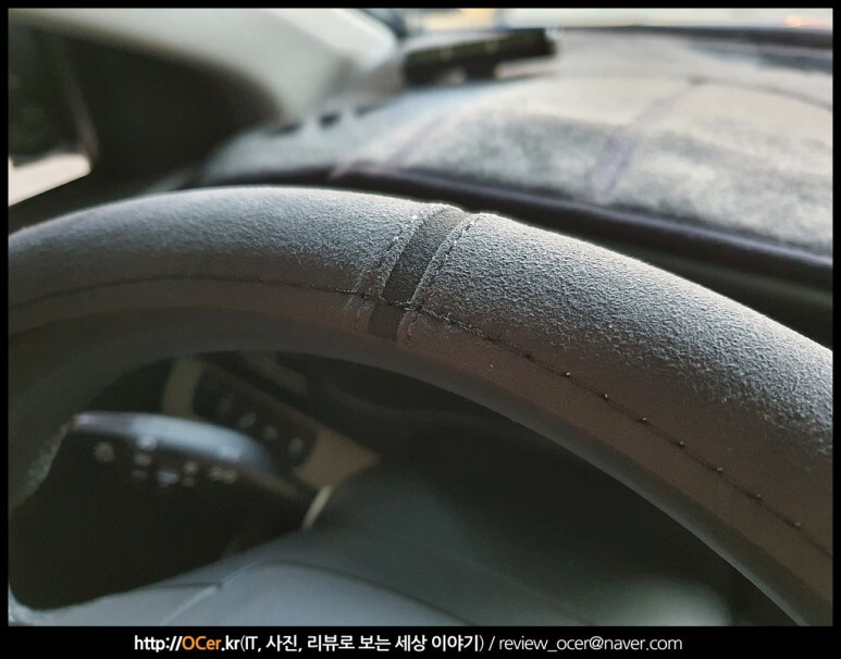 한가지 아쉬운 것은 알칸타라 로고 부분이 좀 더 위로 올라와서 잘 보이면 좋은데 살짝 아래로 치우쳐서 알칸타라 핸들커버라는 것을 보여주고 싶은데 그러지 못하는게 아쉽습니다.