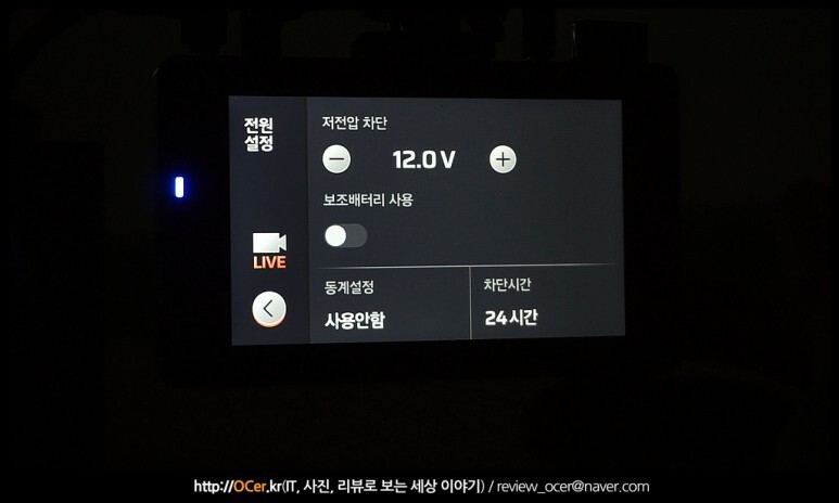 전원과 관련된 설정이 가능한데, 저전압 차단, 보조배터리 사용, 동계설정 및 차단 시간 설정이 가능합니다.