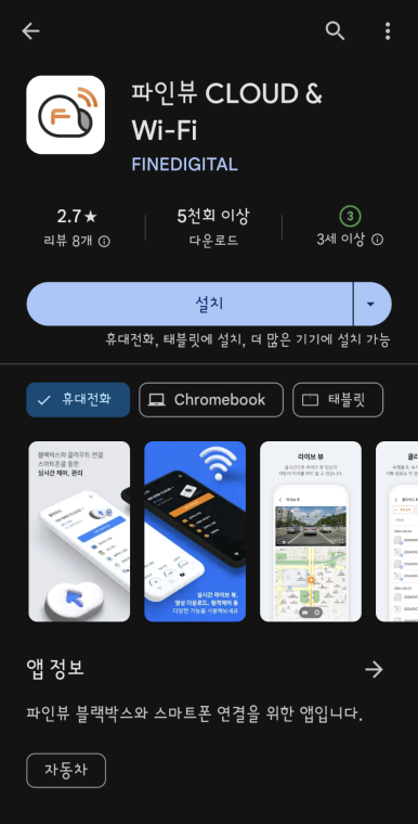 이 중에서 세번째에 있는 파인뷰 클라우드 & 와이파이를 설치합니다.