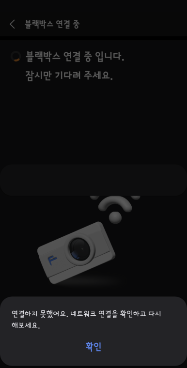 연결 도중 갑자기 연결하지 못했다는 메세지를 띄우네요. 이럴 경우 당황하지 않고~ 확인을 누른 후에, 본체에서 와이파이를 껐다가 다시 켜면 연결할 수 있습니다.