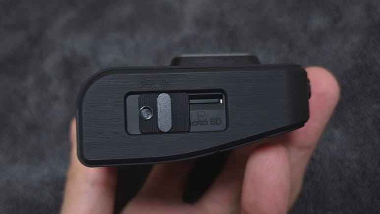 장착시 좌측면에 마이크로SD 메모리카드 슬롯과 전원 스위치가 있습니다.