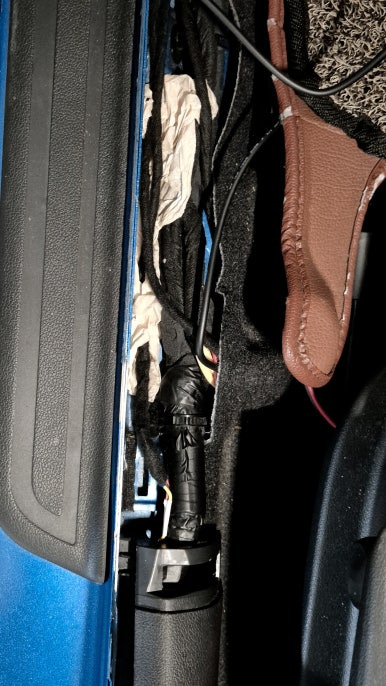 운전석 사이드스텝 쪽 순정 배선 라인으로 전원 케이블을 매립하고, A필러를 통해 맵등 근처까지 케이블을 빼놓았습니다.