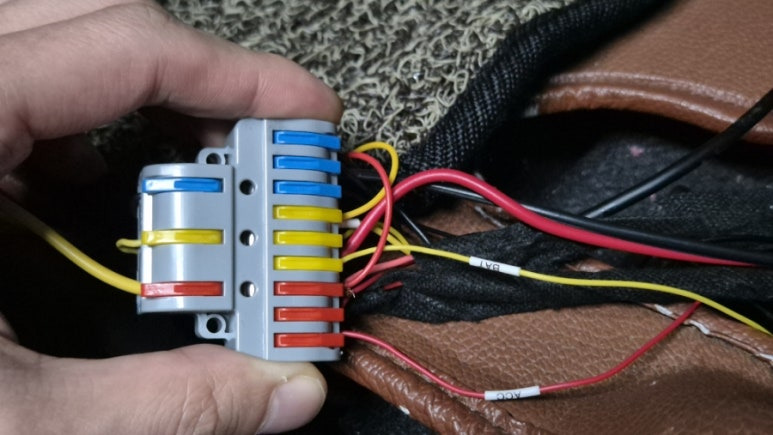 전원은 운전석 하단에 설치된 터미널에 연결했어요.