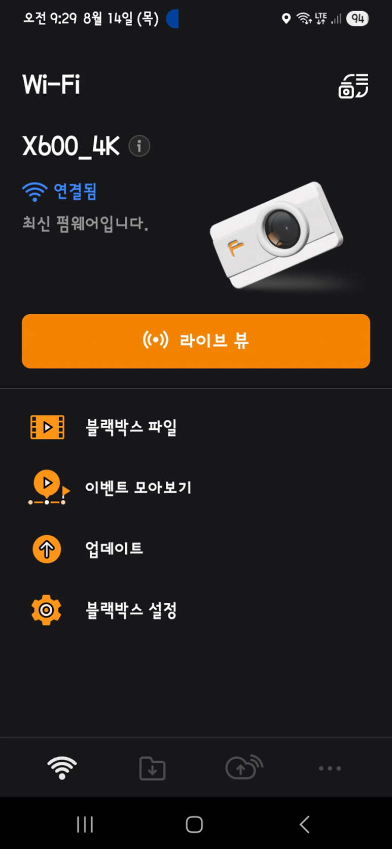 여기까지 마치게 되면 라이브뷰를 보면서 앞 뒤 블랙박스 각도를 조절할 수 있고, 블랙박스 파일을 확인/다운로드 받을 수 있으며, 무선으로 업데이트를 할 수 있고, 블랙박스 설정도 할 수 있습니다.
