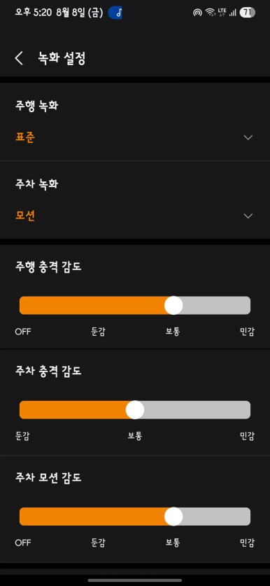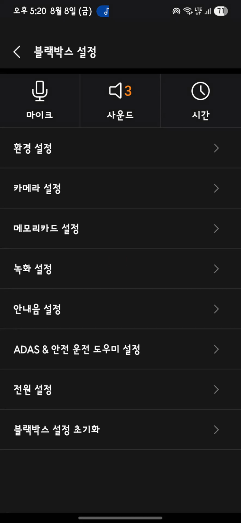 그 다음, 블랙박스를 제대로 활용하기 위해 여러가지 설정을 할 수 있는 설정 화면 입니다.