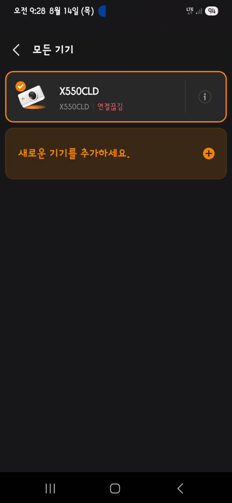 우선 사용할 파인뷰 블랙박스를 추가해줘야 하는데, 저의 경우 기존 사용하던 파인뷰 X550 CLOUD 가 있는데, 여러대의 블랙박스를 추가할 수 있습니다. "새로운 기기를 추가하세요" 를 누릅니다.