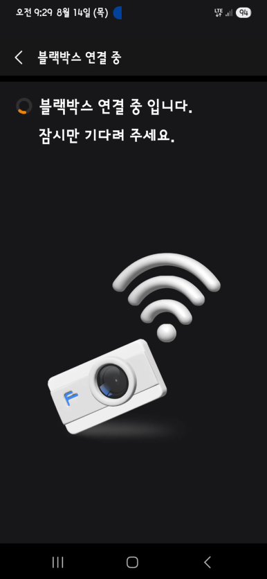 블랙박스 설치가 완료된 상태에서 전원을 넣고(시동을 걸고) 본체에서 와이파이 버튼을 눌러 켜줍니다.(기본값은 켜져 있음)