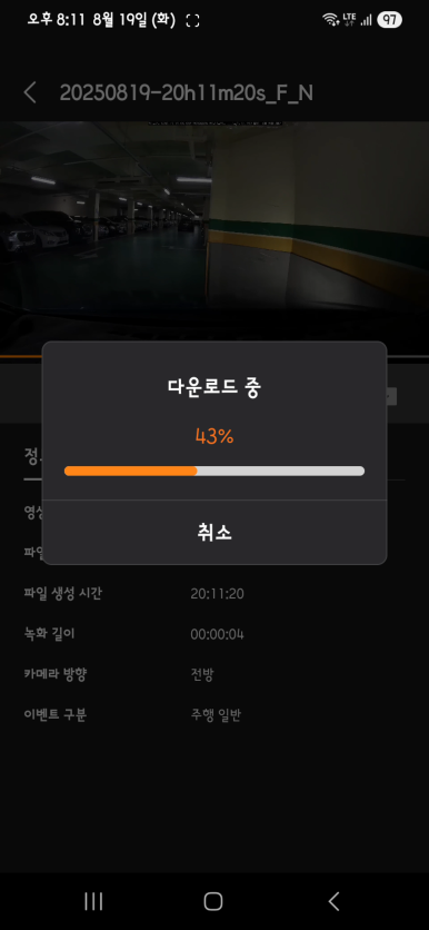 생각보다 꽤 빠르게 연결되고, 영상 전송도 안정적으로 이뤄졌습니다. 특히 짧은 이벤트 영상은 거의 실시간처럼 받아볼 수 있어 편리했습니다.
